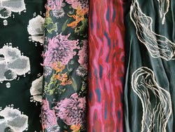 まずデザイナーは、コレクションのイメージから、柄に関するイメージをグラフィック担当に伝え、デザインデータとして起こす。それをもとに、同じジャガードの中でも、刺繍のような風合いが欲しいか、どんな糸を使いたいかなどを明確にし、チームと共有。生地のプロが、それを実現するには、機械織りか、手仕事が必要になってくるか、どの工場、どの職人にお願いするかなどをコーディネートし、生地見本の試作に入っていく。