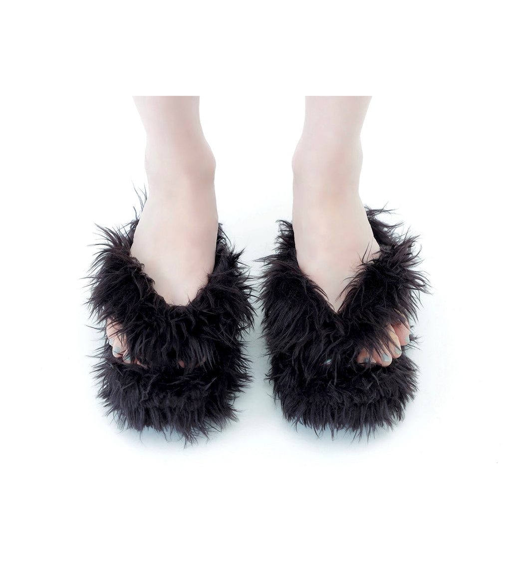 第一弾としてお披露目するのは、伝統的な下駄をベースにしながらも、ふわりとしたエコファーで全体を覆い尽くした一足。細部に至るまで、Lautashi Designならではの特別仕様です。